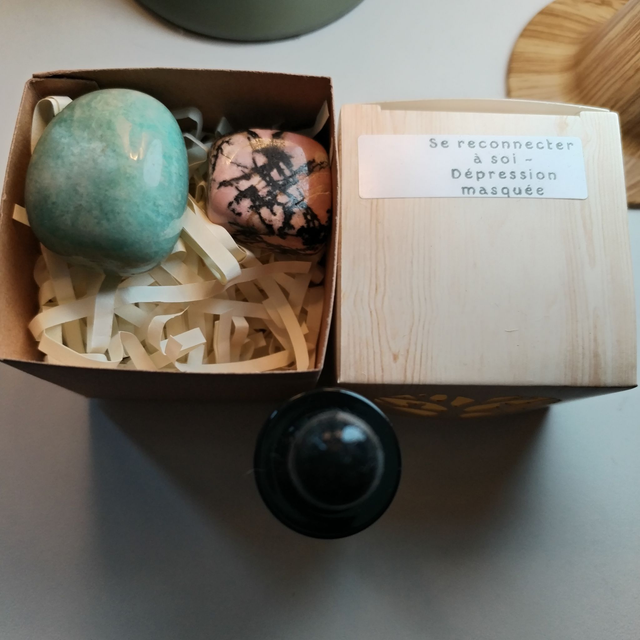 Box composée de 2 pierres + 1 flacon de Fleurs de Bach personnalisé.