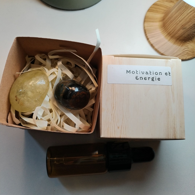 Box composée de 2 pierres + 1 flacon de Fleurs de Bach personnalisé.